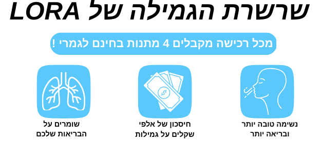 עם LORA עוצרים את הנזק של הסיגריות, נושמים טוב יותר בכל יום ושומרים על הבריאות לשנים קדימה.