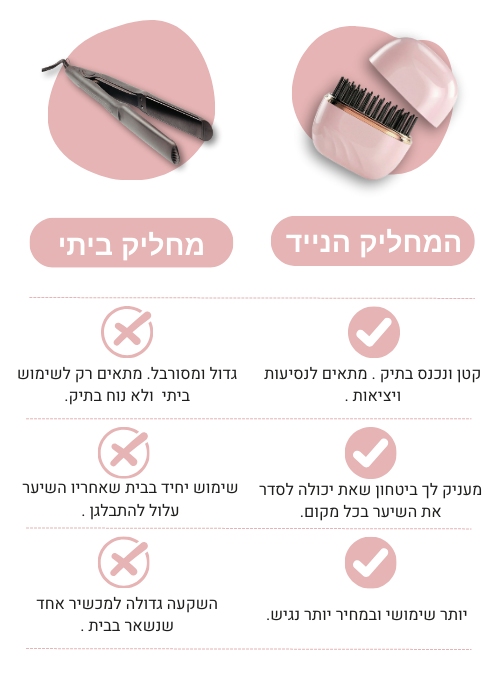 אחרי הרבה ניסיון, בדיקות והתייעצויות, בחרנו להביא את המחליק הנייד הזה כי הוא באמת נותן פתרון אמיתי לבעיה שרוב הנשים חוות במהלך היום.